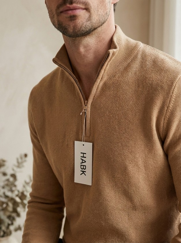 Elevate your everyday rotation with the HABK Quarter-Zip Pullover. Crafted with a distinctive bird’s-eye knit texture, this piece balances the comfort of a sweater with the structure of a formal mid-layer. Whether styled over a collared shirt for the office or worn solo for a weekend gallery visit, it’s the definition of effortless sophistication.